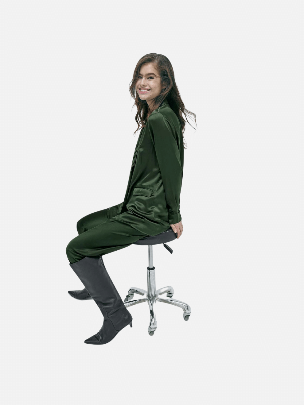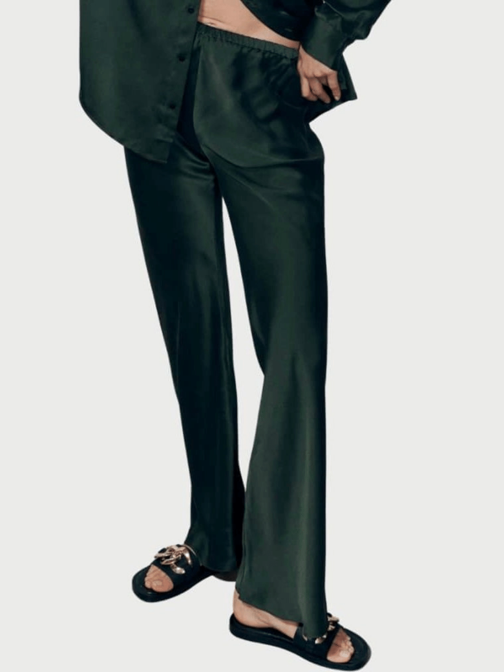 Silk Laundry's everyday pant, cut from 100% Silk Satin. A signature style that falls into a fluid silhouette with a slight flare. Its elasticated waistband sits high above the hip, pulling in to highlight the waistline. Combining elegance, comfort and style, it's a piece that will complement any wardrobe.
