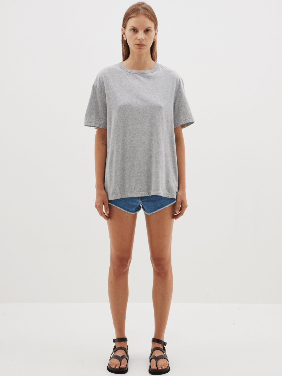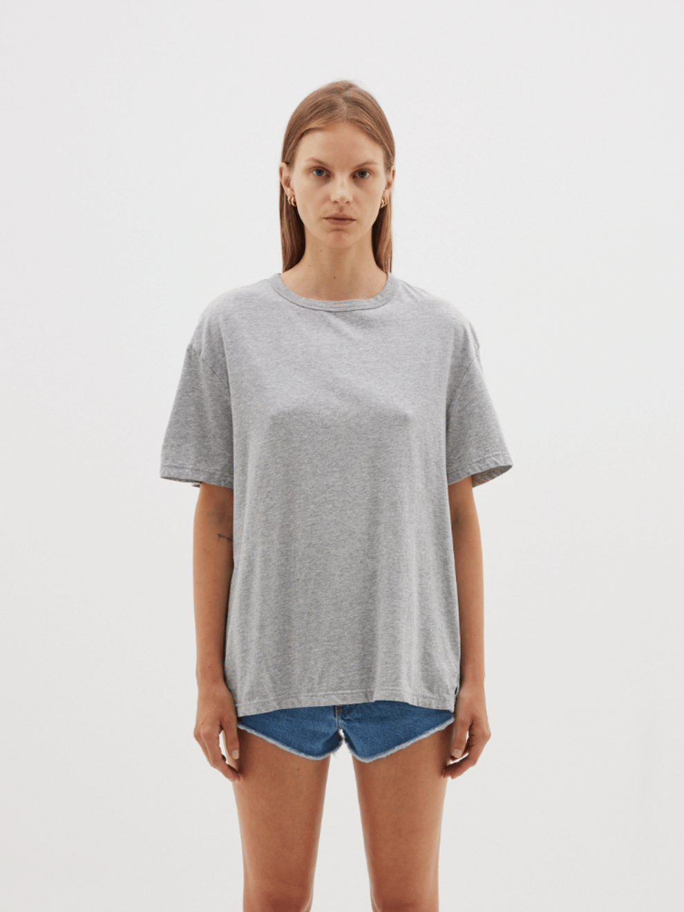 Slouchy fit T-Shirt in organic jersey cotton. Heritage bind detail on arms and neckline. Twisted side seam with signature contrast stitch.