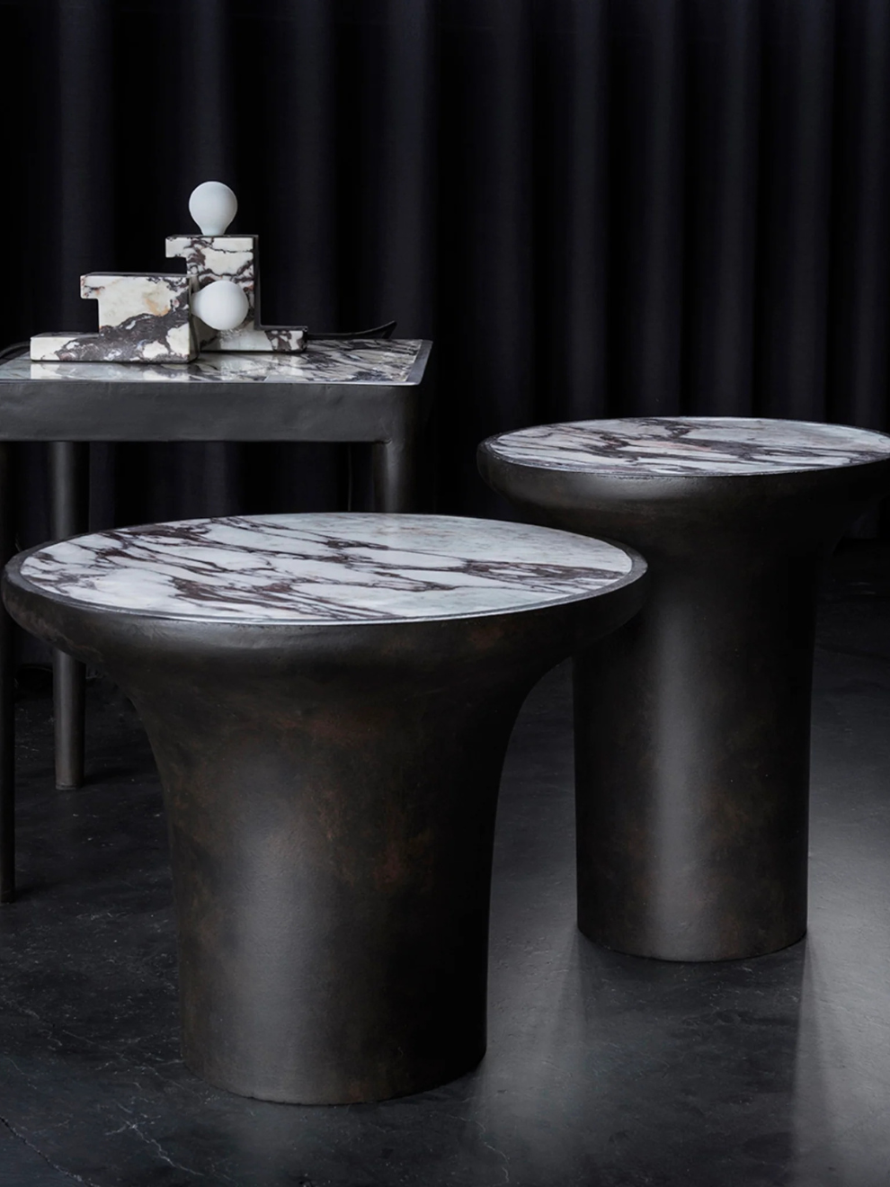 Inspired by architectural building components, the Brick Lamp is made of exquisite solid marble, elegantly carved in sharp geometric shapes. Each lamp is completely unique, emphasising the rich and beautiful patterns of natural stone. The polished surface softly reflects the light from the lightbulb, adding a warmth to the Brick Lamps. Brick lamps comes in two shapes and sizes, complementing each other in an architectural composition or stand alone as sculptural light object.