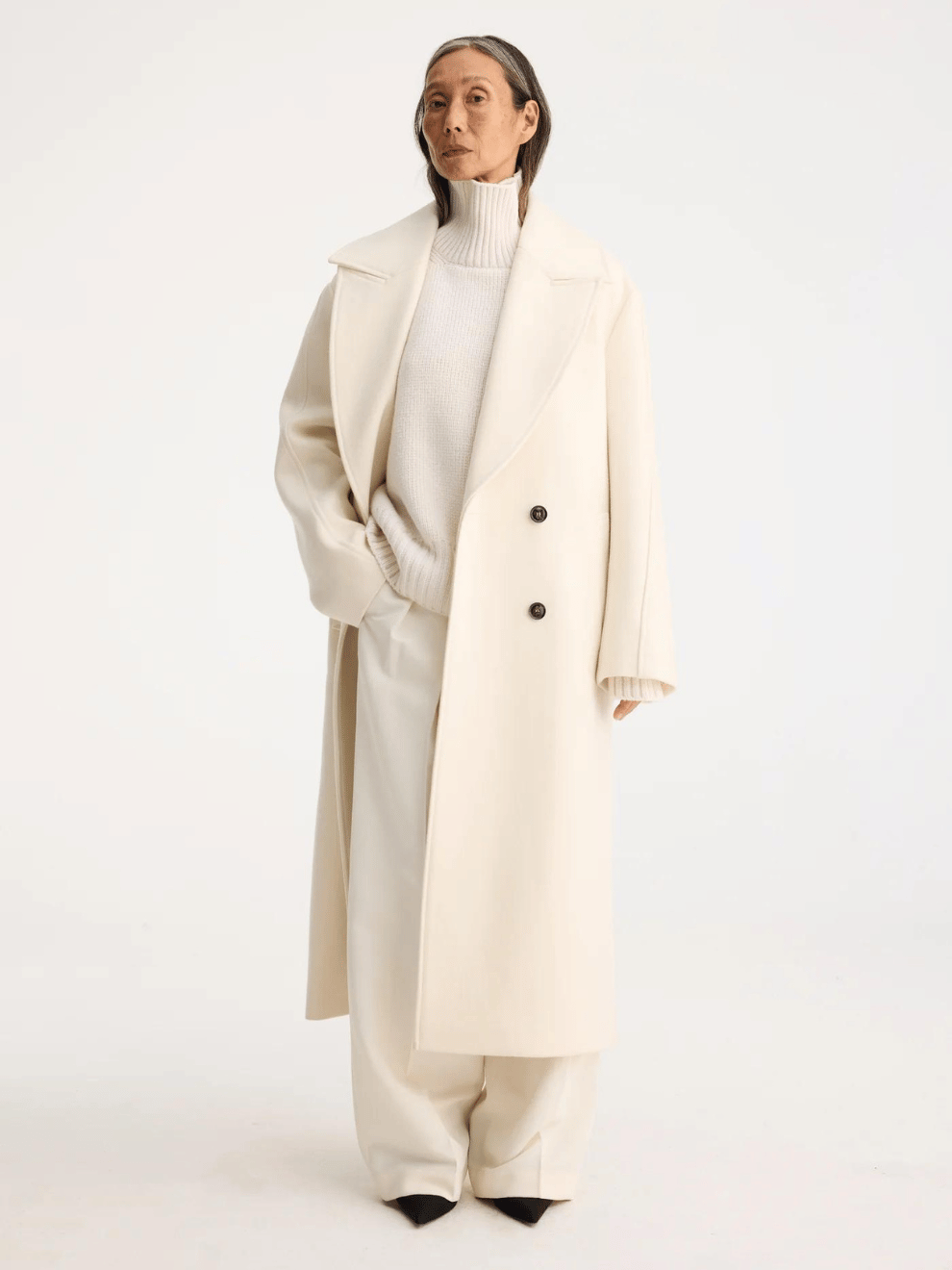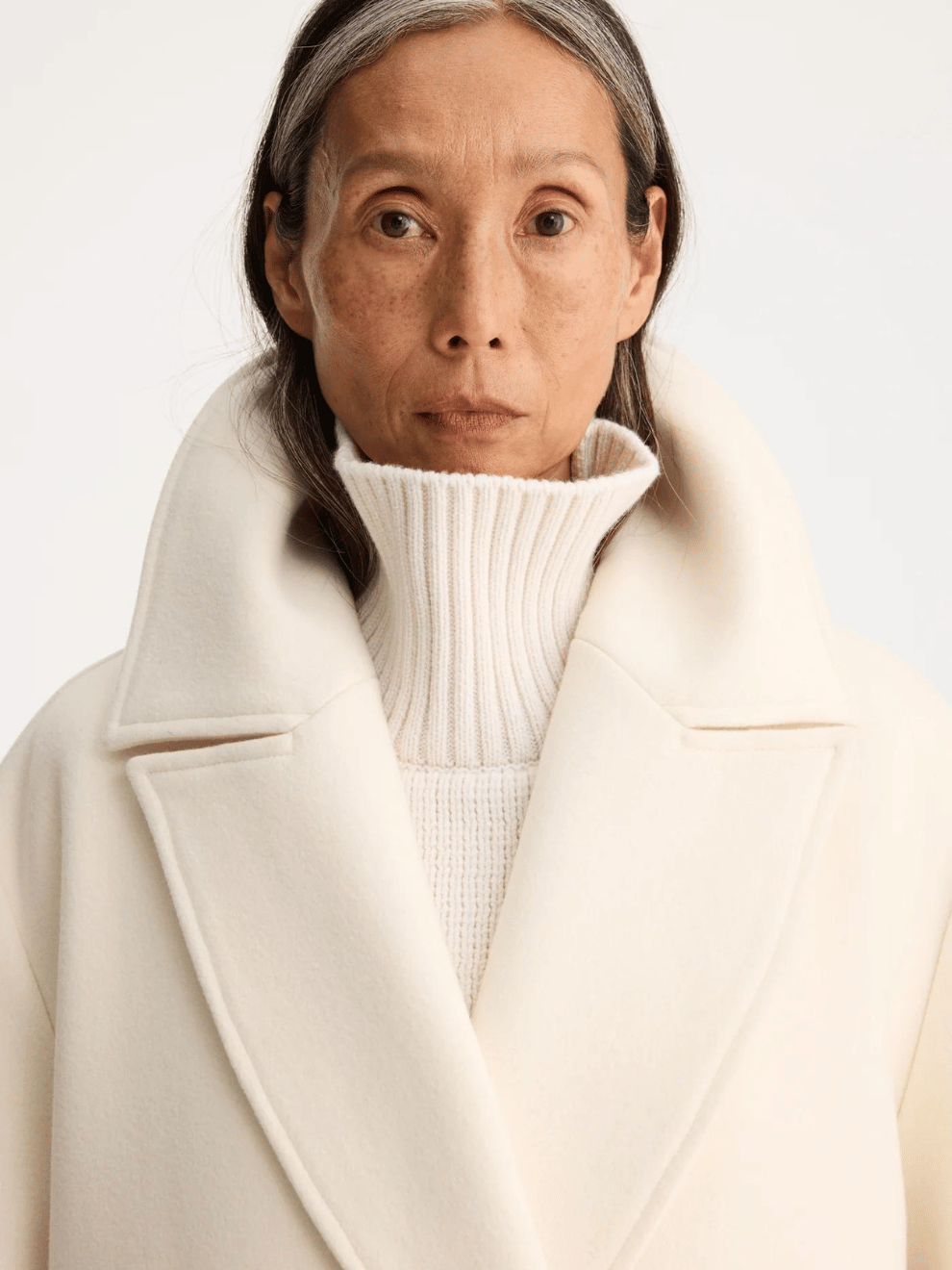 Compact relaxed fit high neck jumper with tilted body. Made in a 100% wool from the Italian mill Filpucci. Knitted by our Italian supplier, a family business.