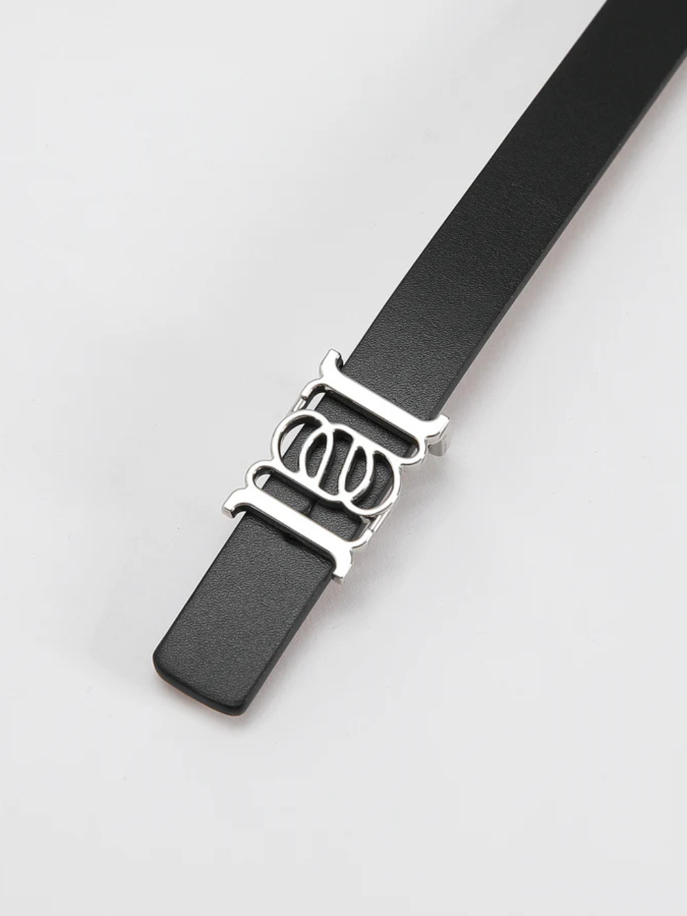 Double-sided belt in smooth calfskin with an ANNALOCH monogram silver buckle. 1.5cm width, adjustable in 5 steps