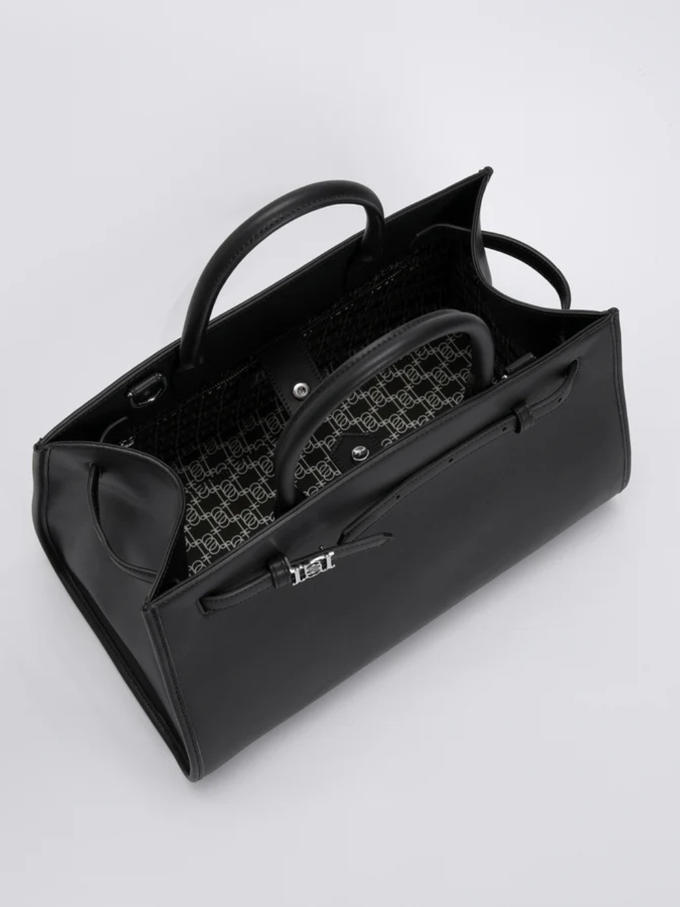 The Recycle Unisex Large Morgan bag combines both vintage and modern styles. The spacious design features a large opening and oversized triangular geometric side panels that enhance its capacity and practicality, The Monogram hardware adds a refined and sophisticated touch and can be adjusted to fit the bag's structure.an internal zipper closure in the back, and an additional internal pocket in the front.