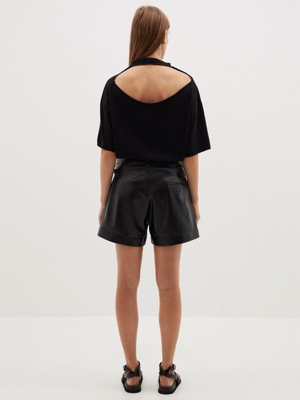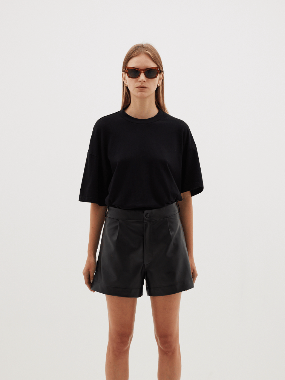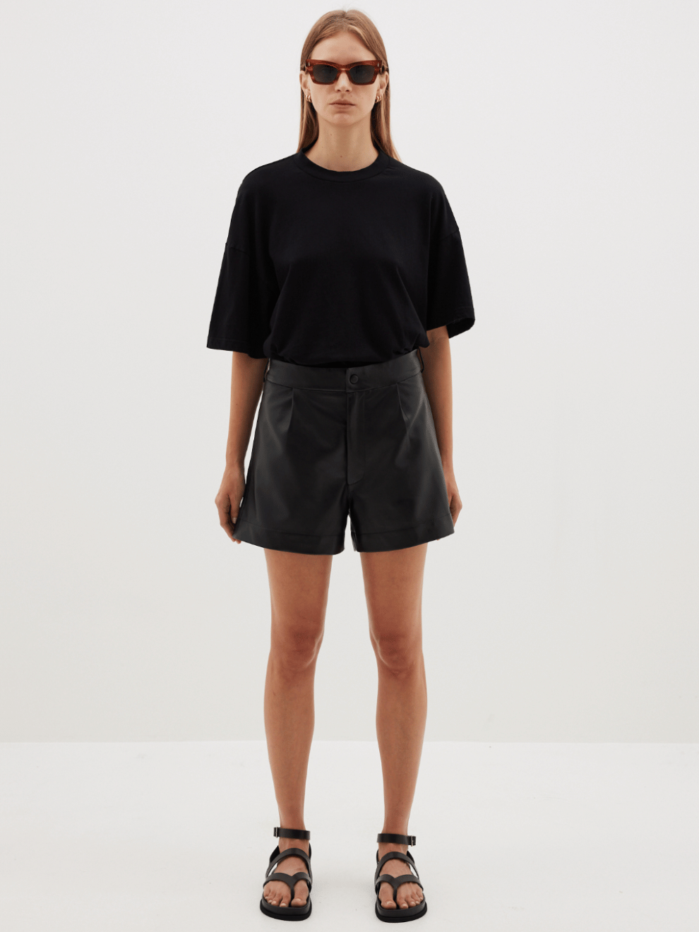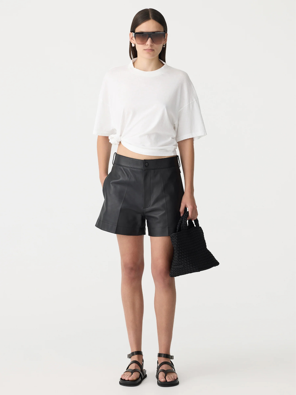 An everyday, refined staple from Bassike. The leather mini short offers a relaxed yet structured design in a premium Italian leather construction. Boasting a fly front, mini-length, and mid-rise to high-rise silhouette, the leather mini short are a trans-seasonal go-to piece. The final garment is detailed with front pleats, side seam pockets and a concealed zip fly with an exposed centre front button for closure. refined by side taps with sliders for cinching, belt loops and a right back jet pocket.