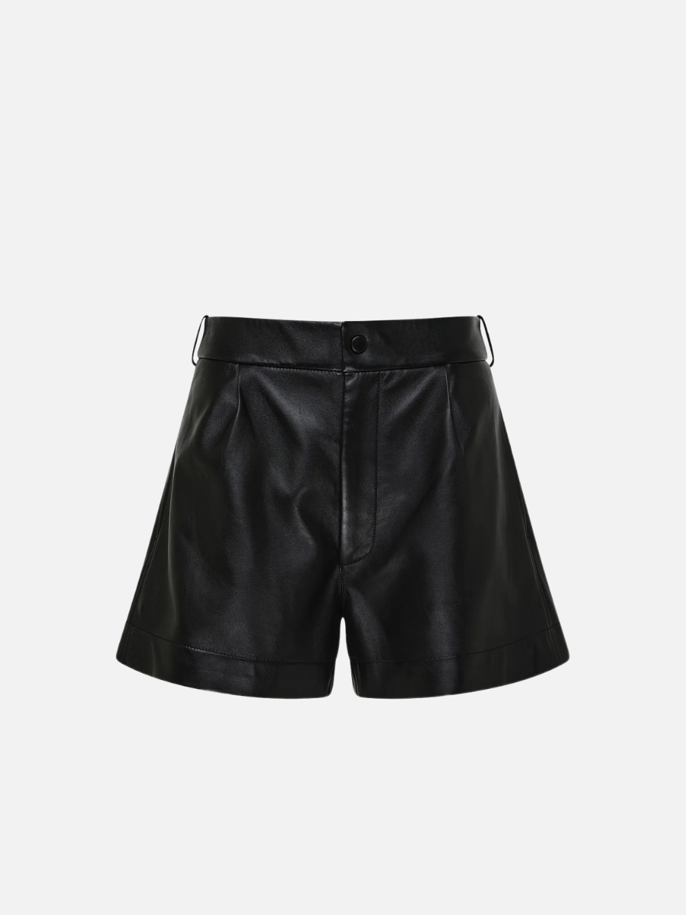 Pleated Mini Short in Black Leather