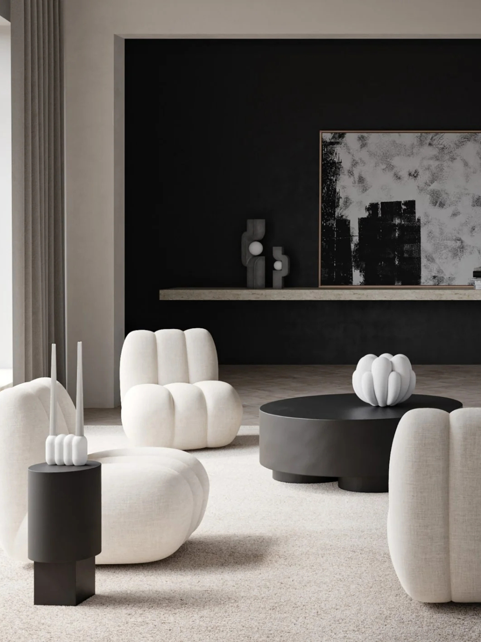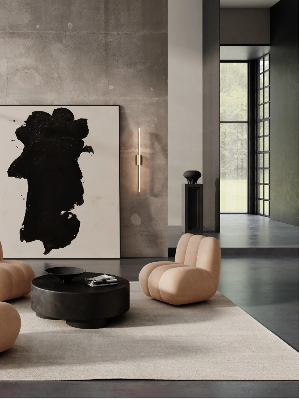 Drawing inspiration from the realms of brutalist architecture and contemporary sculpture, the Big Foot Collection showcases a distinctive design aesthetic that is sure to turn heads. The cylindrical legs exude a sense of modernity and sophistication, while the textured and painted surfaces add an intriguing depth and visual appeal.
