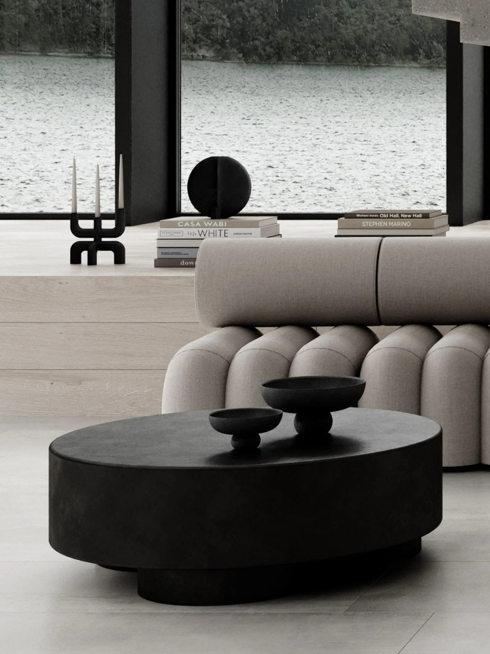 At first glance, this Coffee Table exudes an air of weightiness and solidity, but upon closer examination, you’ll discover a delightful surprise. Crafted from fiber concrete, the benches, side tables, and coffee table are astonishingly lightweight and effortlessly mobile, offering a harmonious balance of style and convenience.