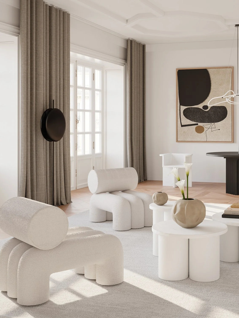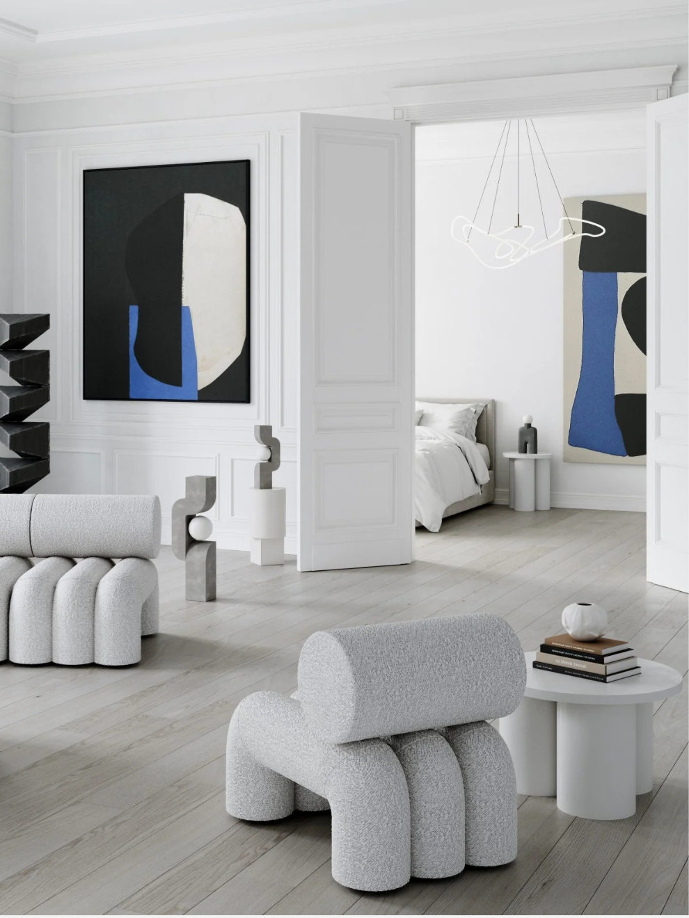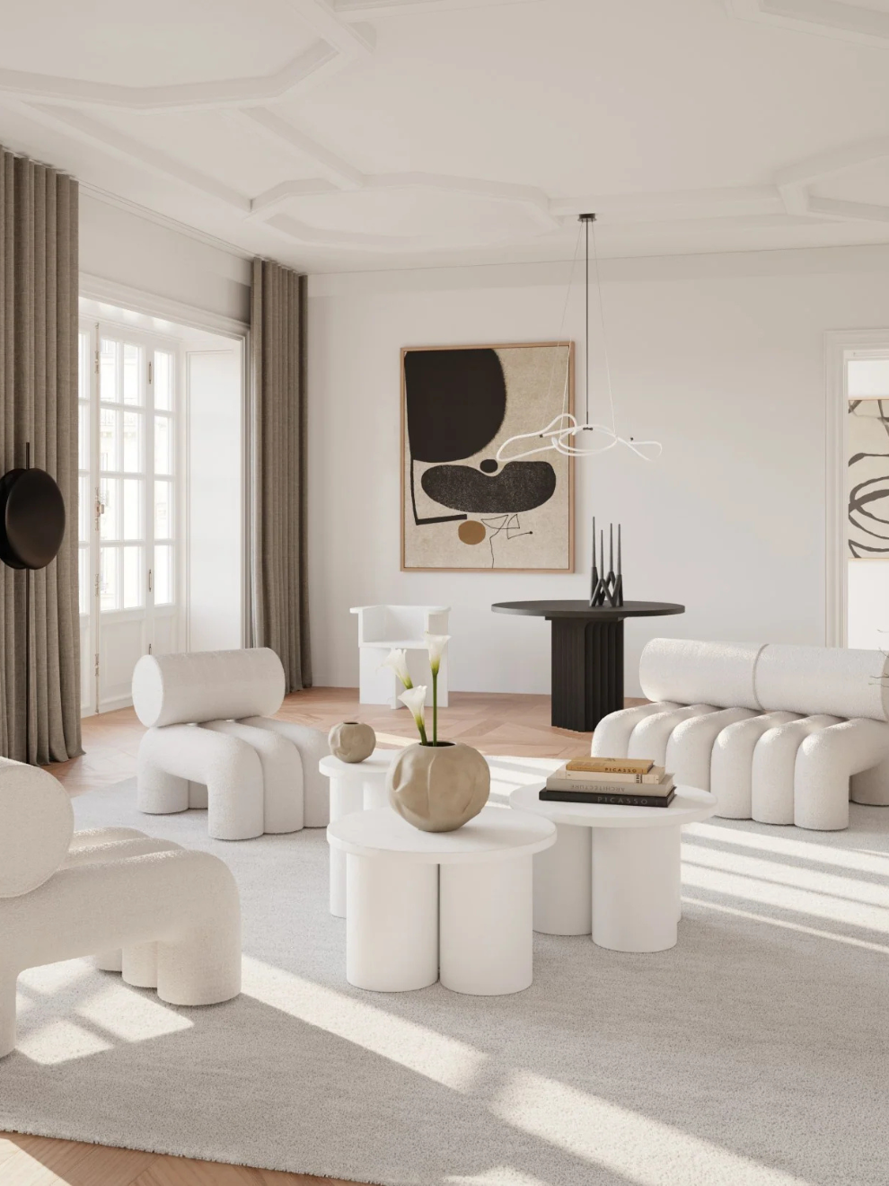 Drawing inspiration from the realms of brutalist architecture and contemporary sculpture, the Big Foot Collection showcases a distinctive design aesthetic that is sure to turn heads. The cylindrical legs exude a sense of modernity and sophistication, while the textured and painted surfaces add an intriguing depth and visual appeal.