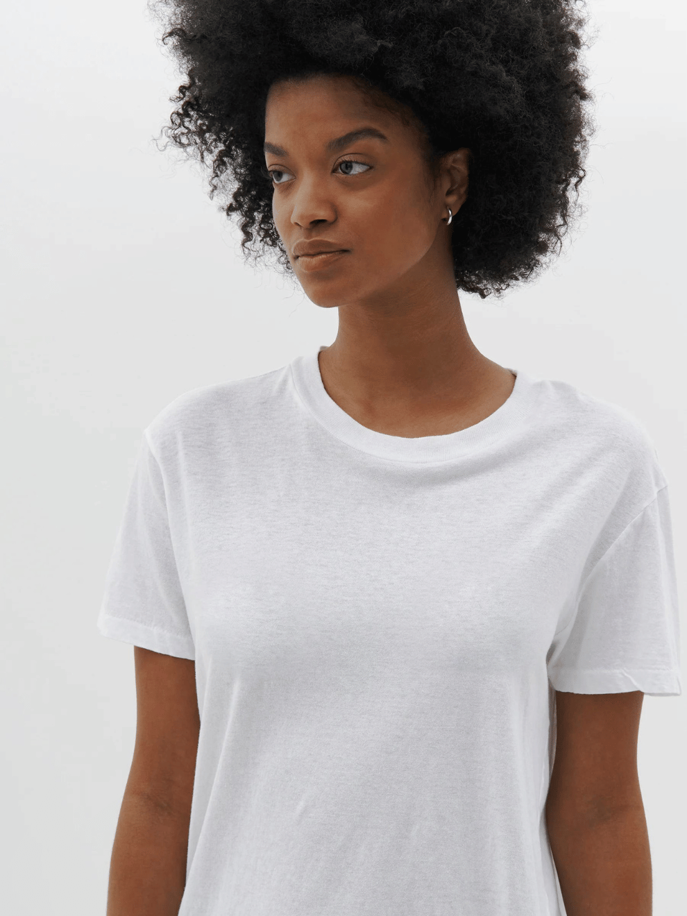 A regular fit short sleeve t-shirt in organic cotton jersey with vintage rib neckline. Bassike signature contrast topstitch detail on back neck.