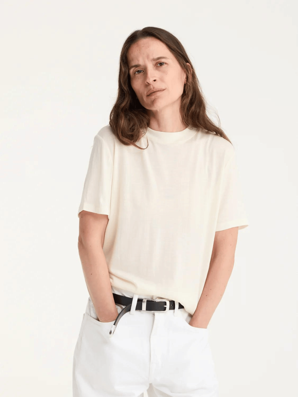 Róhe's classic t-shirt made in a soft and super fine merino wool quality, easy to layer or pair with casual denims to formal trousers.