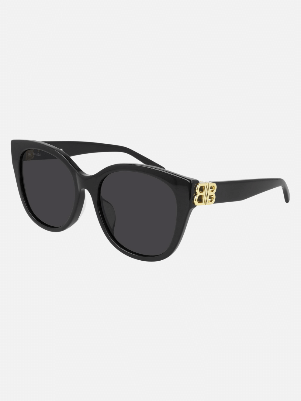 Balenciaga's Dynasty Cat Sunglasses in black acetate with grey lenses, gold toned hardware.