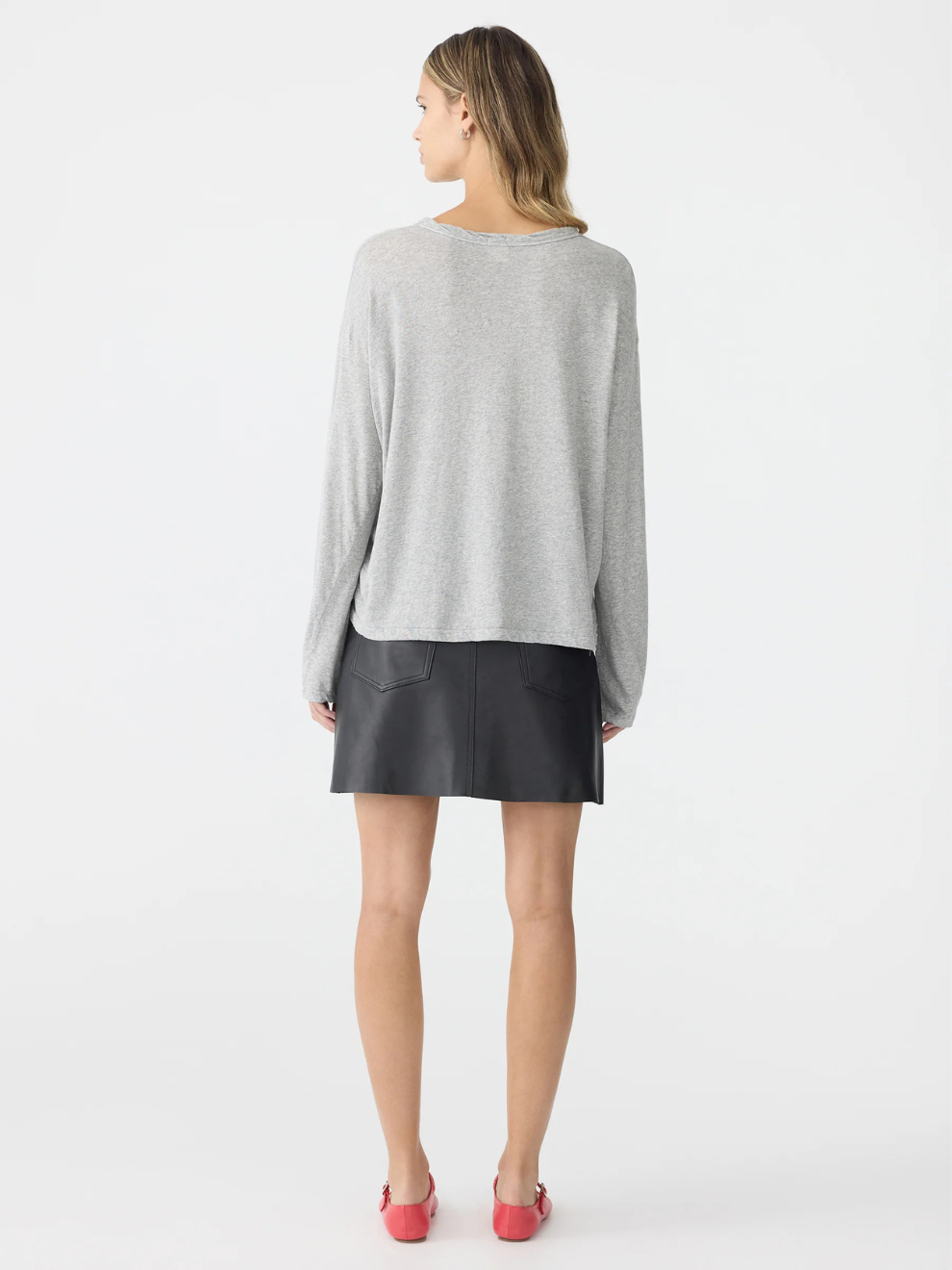 Slouch Superfine Long Sleeve T Shirt in Grey Marl