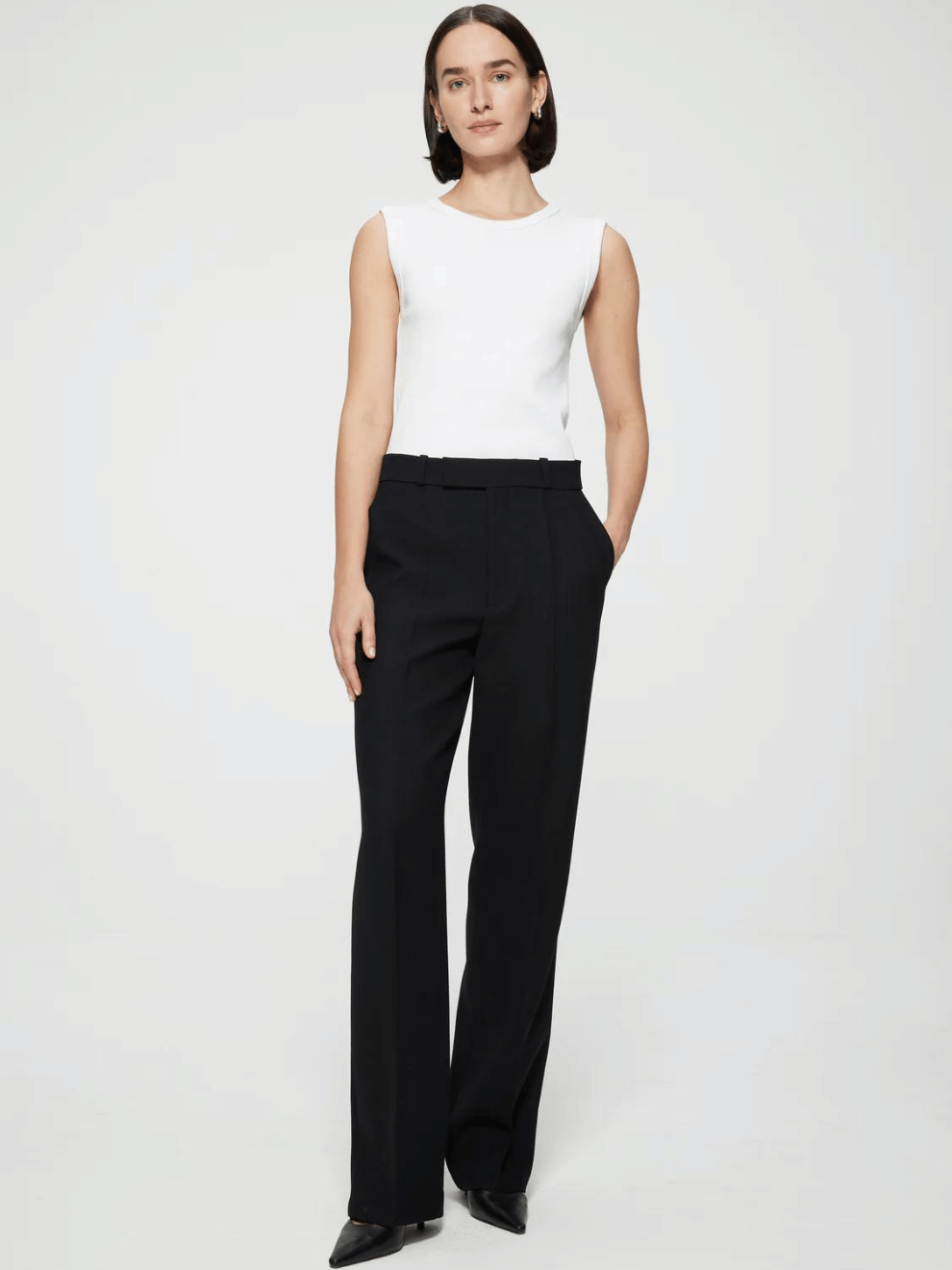 From the FRAME core collection Róhe's Straight Leg Tailored Trousers are made in a heavy wool blend fabric from Italian mill Faisa. The mid-waist design with a tailored waistband makes them a versatile wardrobe staple for any occasion.