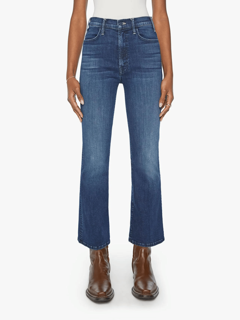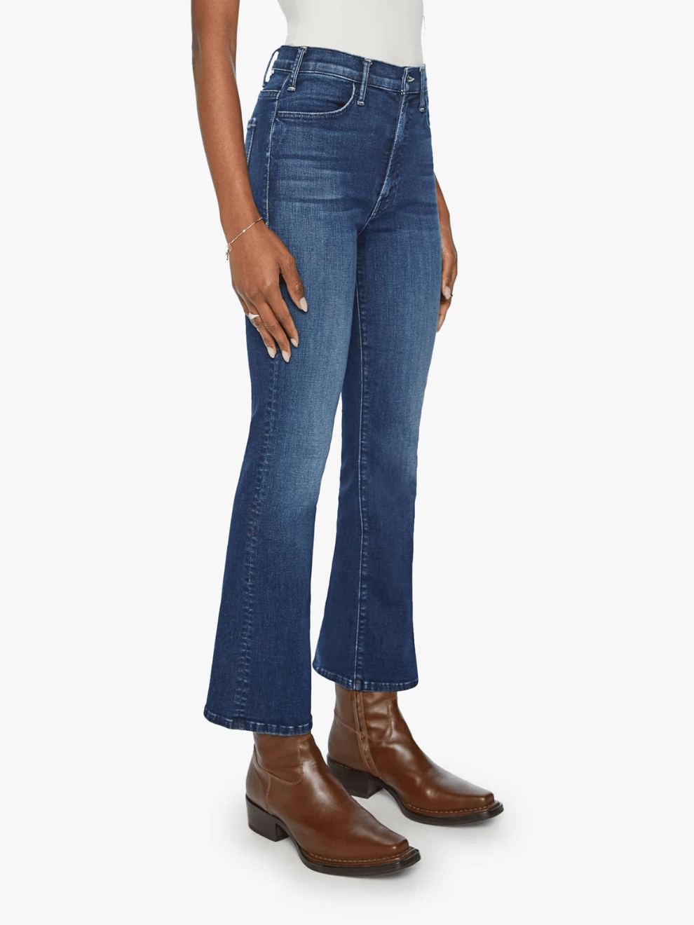 Ripe for the picking. This high-rise flare has an ankle-length inseam and a clean hem. Cut from denim with a touch of stretch, Heirloom is an dark-blue wash with subtle whiskering and fading. Only the finest.